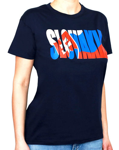 Tričko Slovakia + slovenská vlajka vlajúca (29x15cm), tmavomodré - S